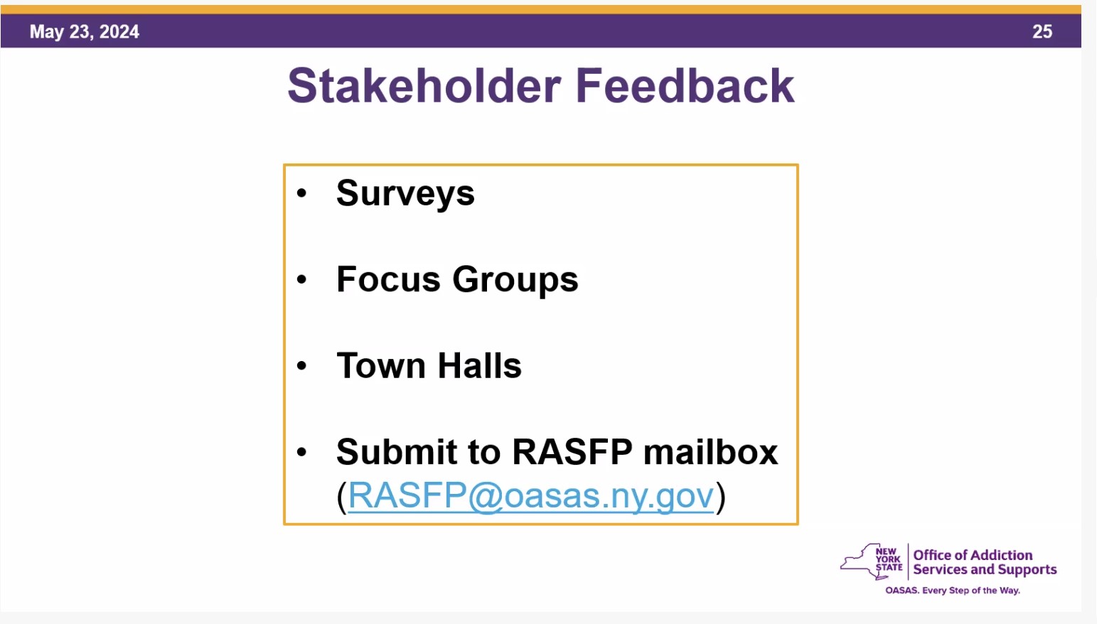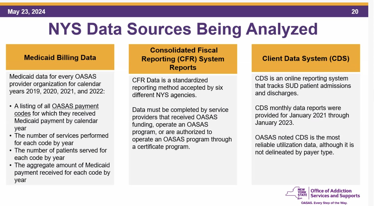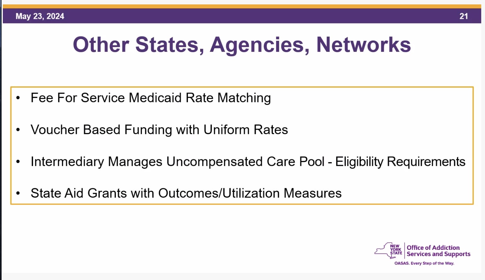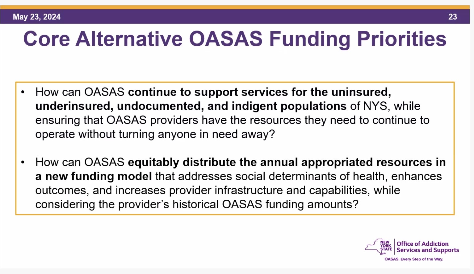 OASAS Restructuring Addictions Services Financing Project